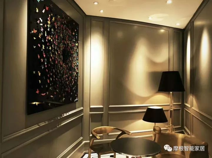餐厅是最需要调光的,摩根可以通过全宅调光,增加空间的个性,突出食物的美味,打造一个光线柔和的空间。我们去高档餐厅吃饭,会发现里面的灯光都不会很亮,给人一种温馨,舒适的感觉。如果对餐厅做了调光的话,我们在家就可以享受到高档餐厅才有的灯光环境氛围。当节假日,比如情人节、结婚纪念日,生日,吃西餐时,我们把餐厅的灯光调至50%、10%,就可以打造出烛光晚餐的效果,这是一件多么浪漫的事情啊。